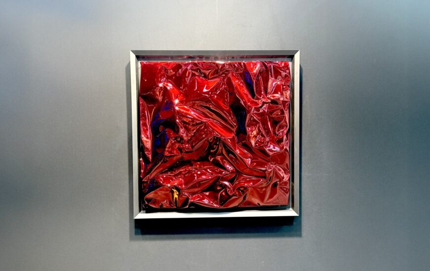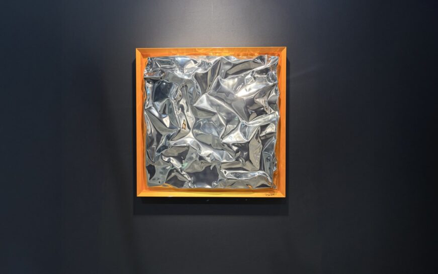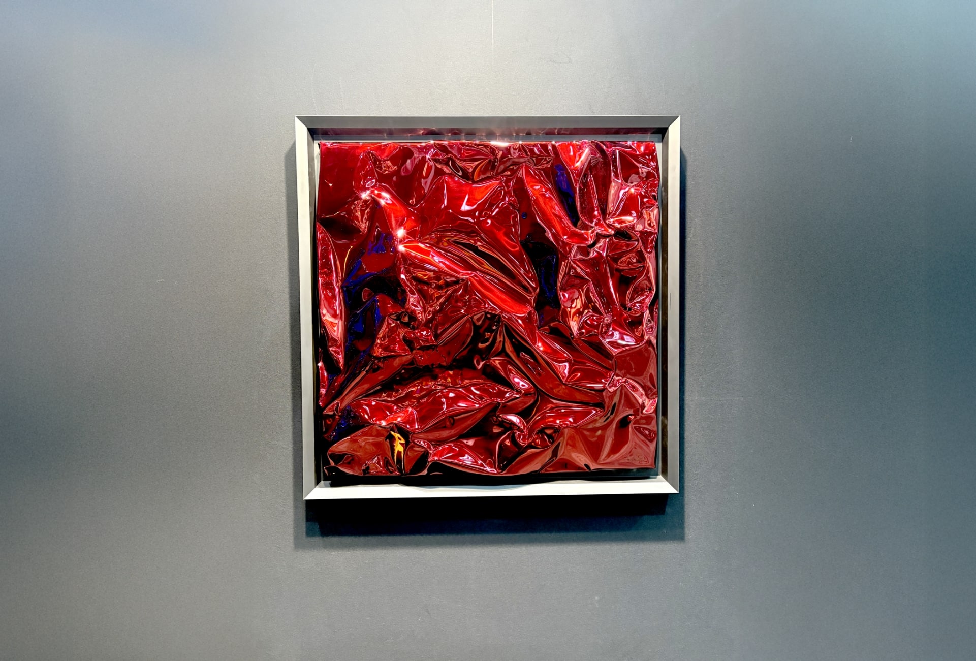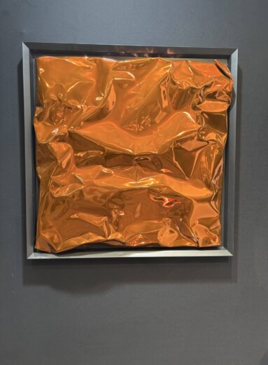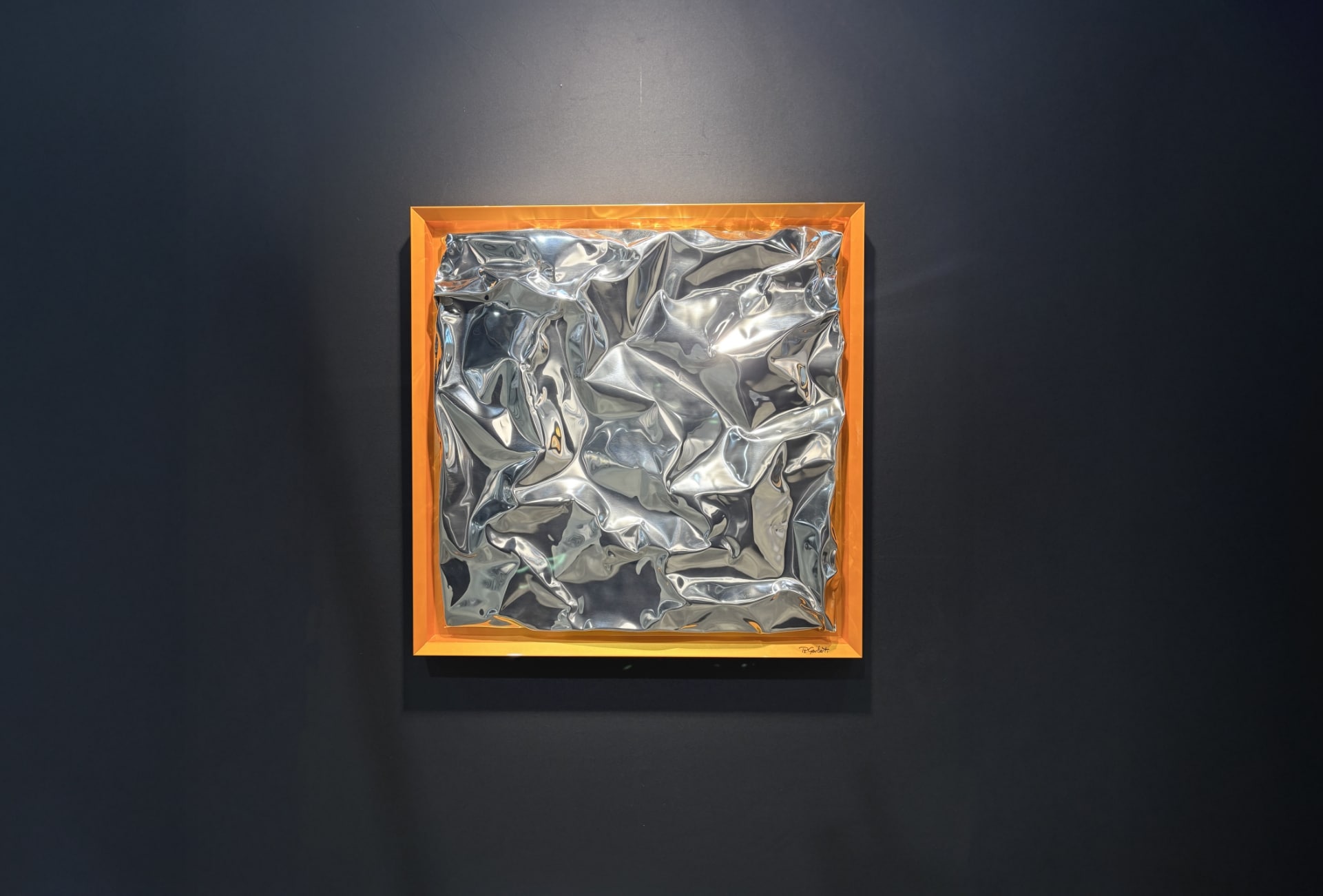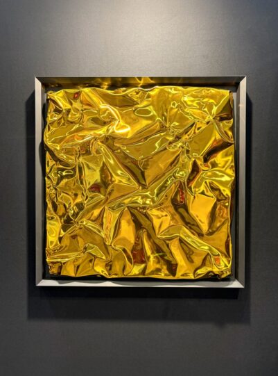 Les œuvres sont réalisées en inox et contraintes à froid pour garder le naturel de déformation des plaques soudées sur une armature Inox.